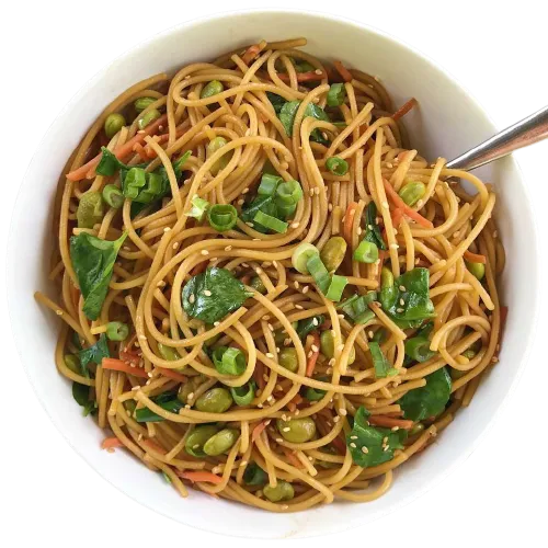 Quick noodles stir fried until just crisp, and then tossed with a sweet and savory